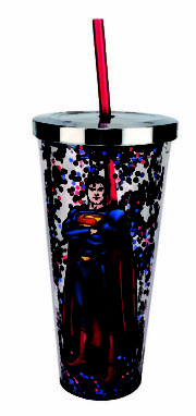 Superman Standing Art Figure 18 oz Insulated Stainless Steel Lid Travel Cup NEW