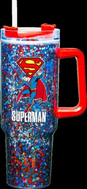 Superman Flying Under “S” Logo 40 oz Glitter Acrylic Double Wall Travel Mug NEW
