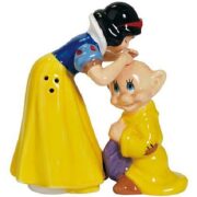Walt Disney Snow White Kissing Dopey Sculpted Ceramic Salt Pepper Set NEW BOXED