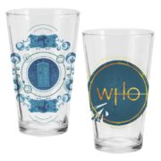 Doctor Who Gallifreyan Logos and Tardis 2 Piece 16 oz Laser Decal Glass Set UNUSED