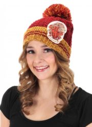 Harry Potter House of Gryffindor Heathered Pom Beanie Hat with Crest NEW UNWORN
