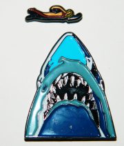 Jaws Movie Poster Shark and Victim Logo Enamel Metal Pin Set of Two NEW UNUSED