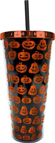 Pumpkins and Jack-o’-Lanterns Images 16 oz Foil Travel Cup with Straw NEW UNUSED