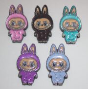 Labubu Style Characters Metal Enamel Die-Cut Lapel Pin Set of 5 NEW UNUSED