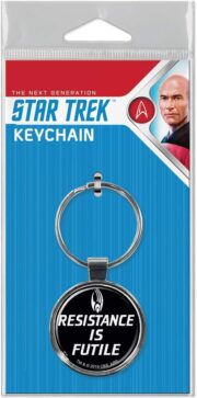 Star Trek TNG Beam Resistance Is Futile Phrase Round Metal Key Chain SEALED
