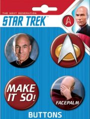 Star Trek The Next Generation Picard Round Button Carded Set of 4 NEW UNUSED