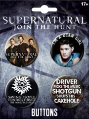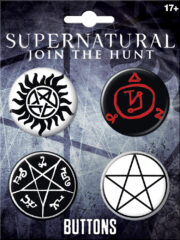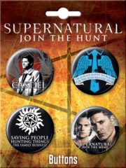 Supernatural TV Series Carded Set of 4 Round Buttons Set #5