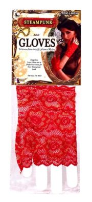 SteamPunk Cosplay Victorian Red Ruffled Lace Fingerless Gloves