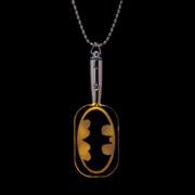 Batman Black Die-Cut Bat Comic Logo Metal Enamel Necklace NEW UNUSED