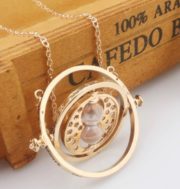 Harry Potter Rotating Time Turner with Hourglass Gold Toned Metal Necklace NEW