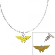 DC Comics Wonder Woman WW Yellow Chest Logo Necklace and Earring Set