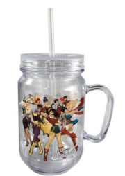 DC Comics Bombshells Figures Double Wall 16 oz Acrylic Mason Jar with Straw