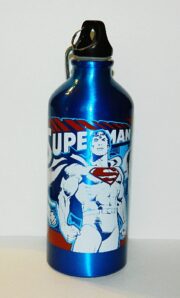 Superman Figure Collage 20 oz Aluminum Blue Water Bottle, NEW UNUSED