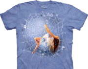 Swing Fairy Over Spider-Web Hand Dyed Blue T-Shirt