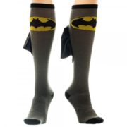 Batman Logo Black Grey and Yellow Knee High Derby Socks with Shiny Cape