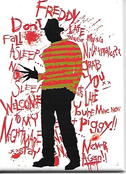 This is one of a series of licensed 2.5″ x 3.5″ magnets featuring images and phrases from the Nightmare On Elm Street horror movie series. This is a new unused magnet and it is stored in a smoke and pet free environment.
