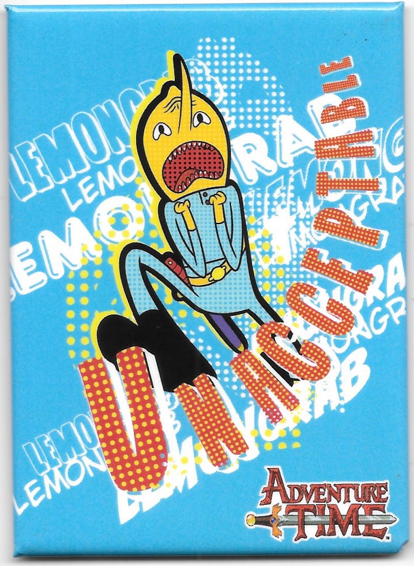 This is a licensed large 2.5″ x 3.5″ refrigerator magnet featuring images and logos from the popular animated TV series Adventure Time. It is new and unused and stored in a smoke and pet free environment.