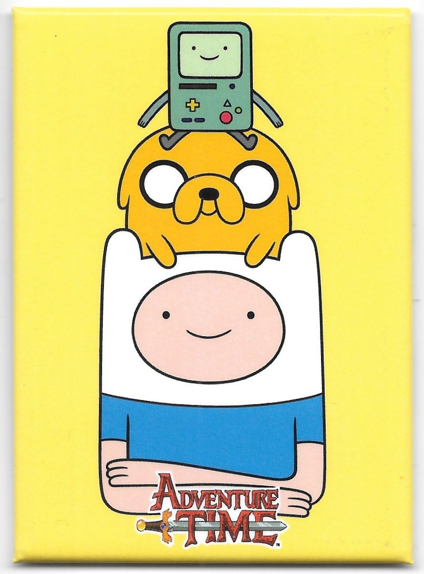 This is a licensed large 2.5″ x 3.5″ refrigerator magnet featuring images and logos from the popular animated TV series Adventure Time. It is new and unused and stored in a smoke and pet free environment.