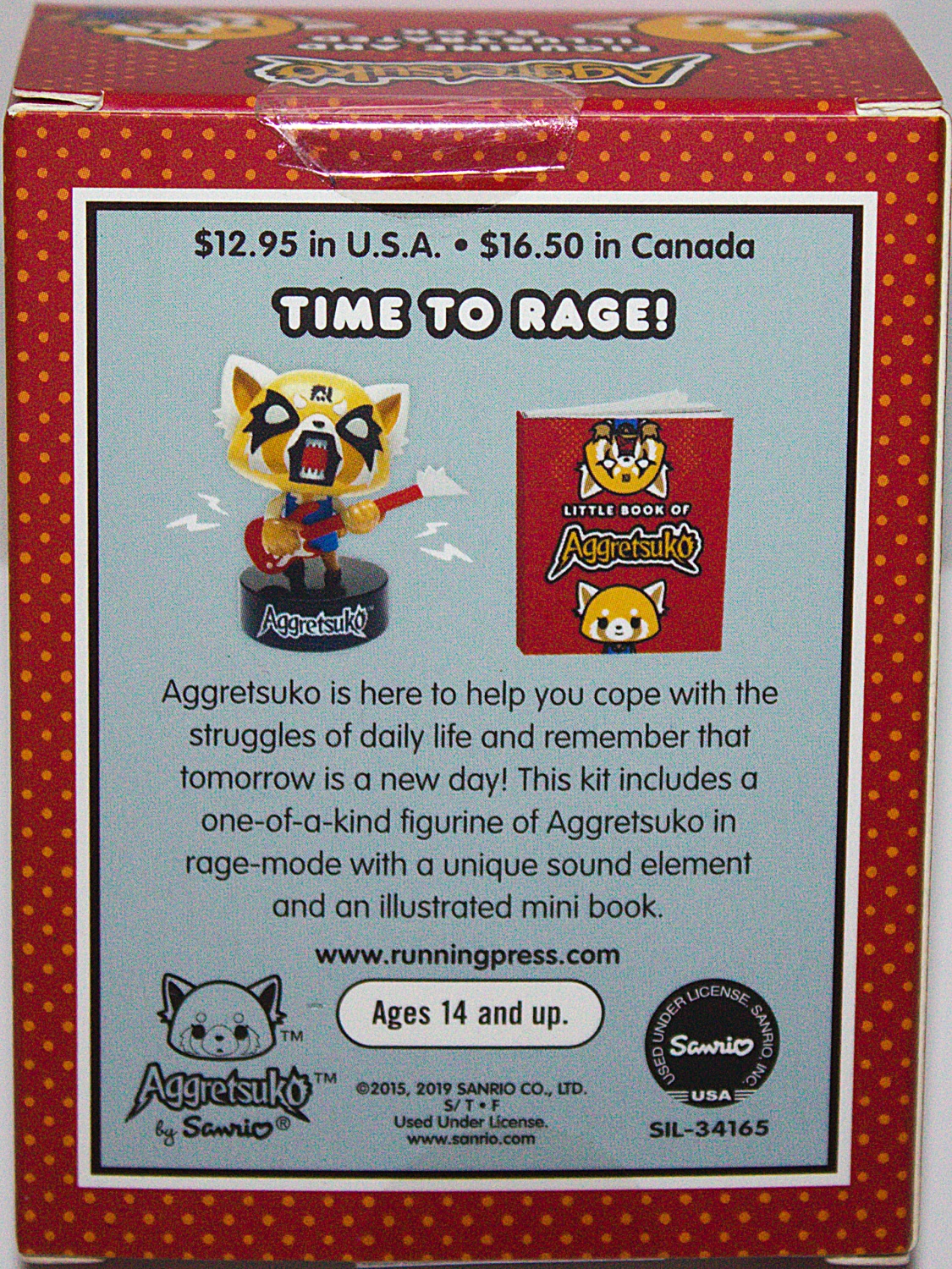 Time to rage with this unique miniature Retsuko figurine based on the hit Netflix show! From terrible commutes to harsh deadlines, unsympathetic bosses and the struggles of the daily grind, this collectable Aggretsuko Figurine is here to help you EMBRACE THE RAGE or just remember that tomorrow is a new day. This miniature kit includes: A one-of-a-kind 3″ figurine of Retsuko in rocking out in rage-mode and button that plays a heavy metal tune plus an illustrated 32-page book with quotes, character profiles, and art from the show. This is a new, sealed copy that we purchased direct from the publisher and it has been stored in a smoke and pet free environment.