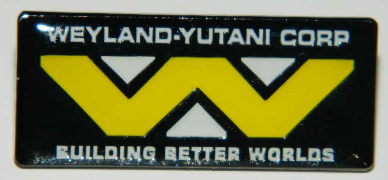 This is a new, unused 1.25″ wide metal enamel pin of the logo of the Weyland-Yutani Corporation as seen in the hit movie `Alien’ and ‘Aliens’. This is the second version which features the “Building Better Worlds” phrase at the bottom. This is the corrupt company than owned the Nostromo and its expedition, and was terraforming the planet in the second movie. It has been stored in a smoke and pet free environment.