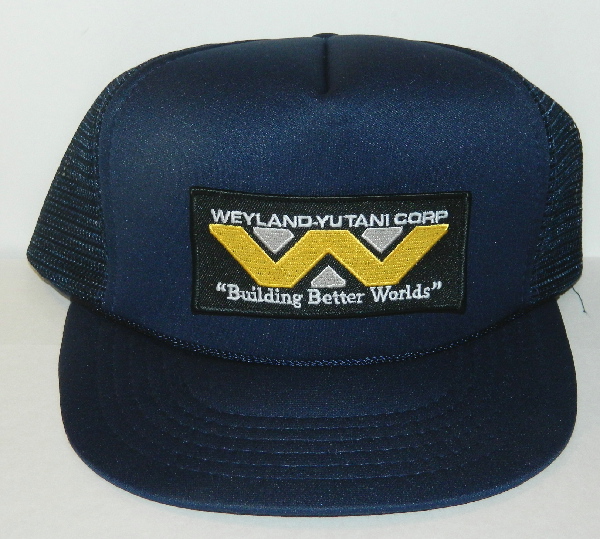 This is a cotton baseball style hat with a polyester nylon mesh back with the 4″ wide patch of the logo of the Weyland-Yutani Corporation as seen in the hit movie `Alien’ and ‘Aliens’. This is the second version which features the “Building Better Worlds” phrase at the bottom. This is the corrupt company than owned the Nostromo and its expedition, and was terraforming the planet in the second movie. It is available on either a blue or black hat. If you do not choose we will ship it on black. This item has been stored in a pet and smoke free environment.