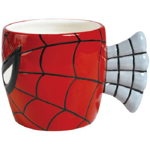 This is a white inside and red outside ceramic 15 ounce mug featuring a wrap-around art image of the web design face mask of Marvel Comics The Amazing Spider-Man. The handle is designed to look like his web. This mug is new and unused with a photo quality design and comes in an illustrated box and is stored in a smoke and pet free environment.