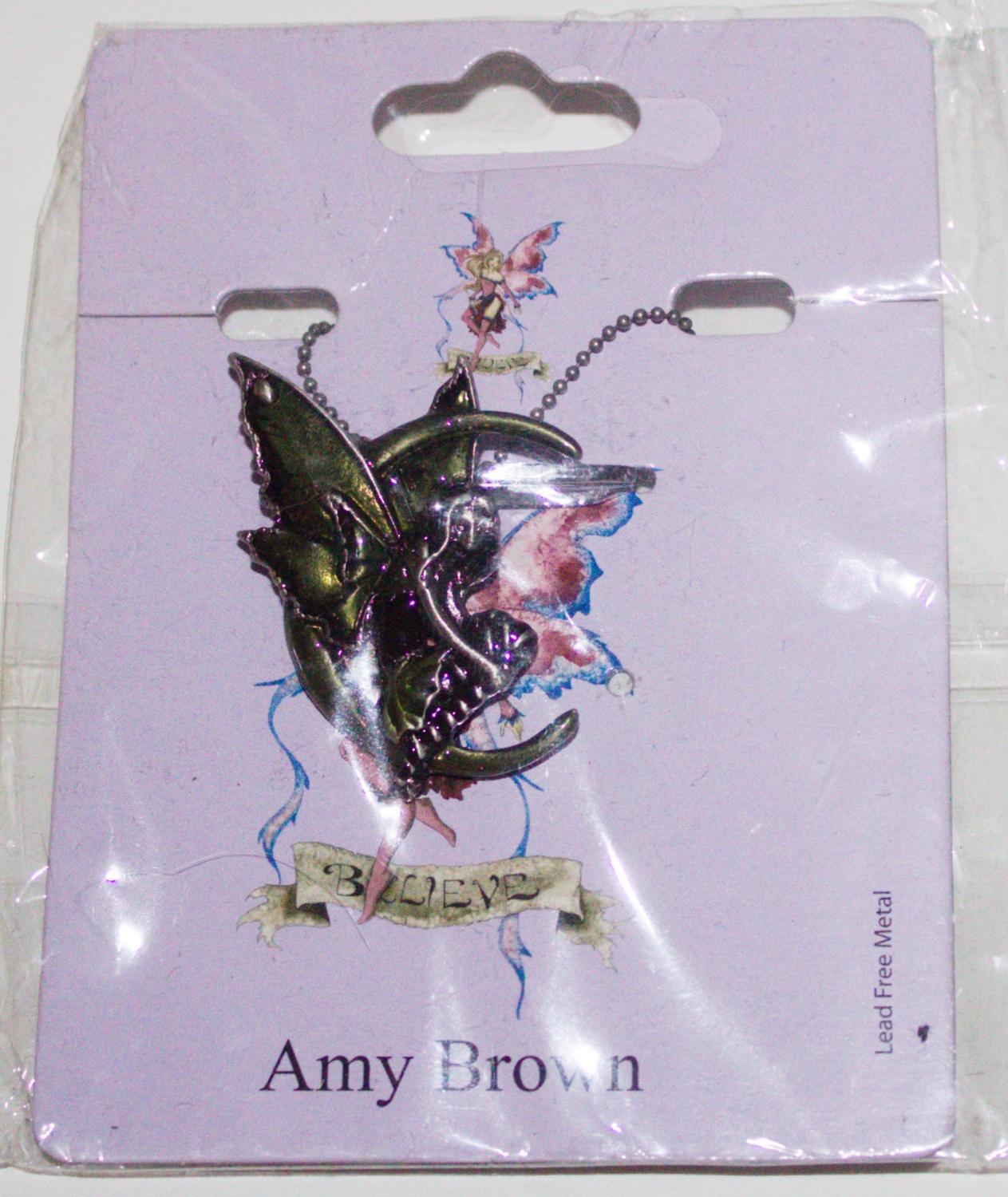 This is one of a series of licensed pendant/necklaces featuring the image of a fairy as conceived by famed artist Amy Brown. It is a new, unused pendant/necklace stored in a smoke and pet free environment.