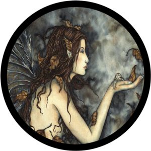 This is a 3″ wide patch that depicts the Autumn fairy as drawn by well known fantasy artist Amy Brown.