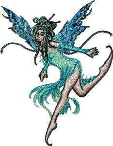 This is a new, unused, 4″ high embroidered patch that depicts the Water Element fairy as drawn by well known fantasy artist Amy Brown. This patch comes with a glue backing for easy application and has been stored in a smoke and pet free environment.
