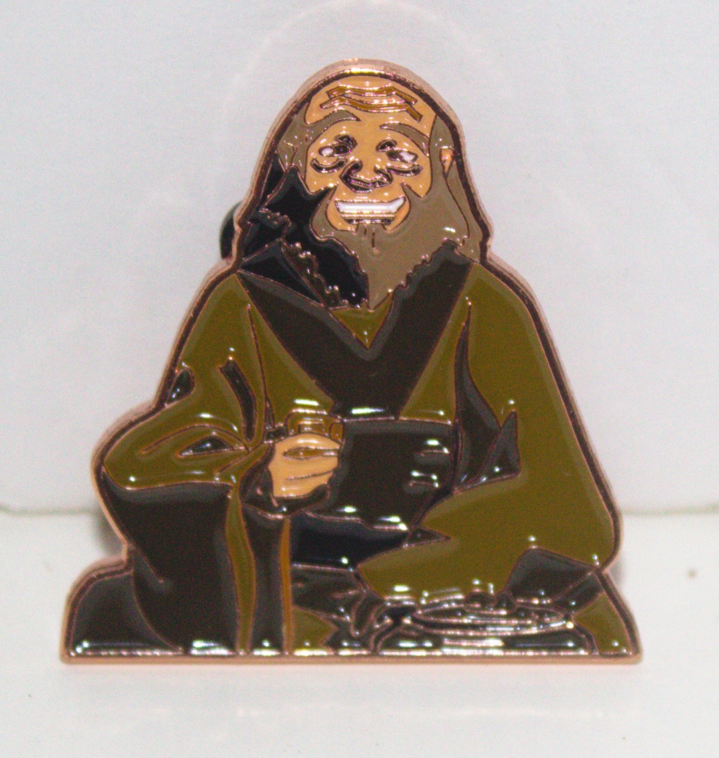 From Avatar the Last Airbender animated TV series, this is an image of a sitting General Iroh, also known as Uncle. It is a new, unused metal enamel die-cut pin that measures 1.5″ wide and 1.5″ high and comes with a single clutch back pin for attachment. It is stored in a smoke and pet free environment.