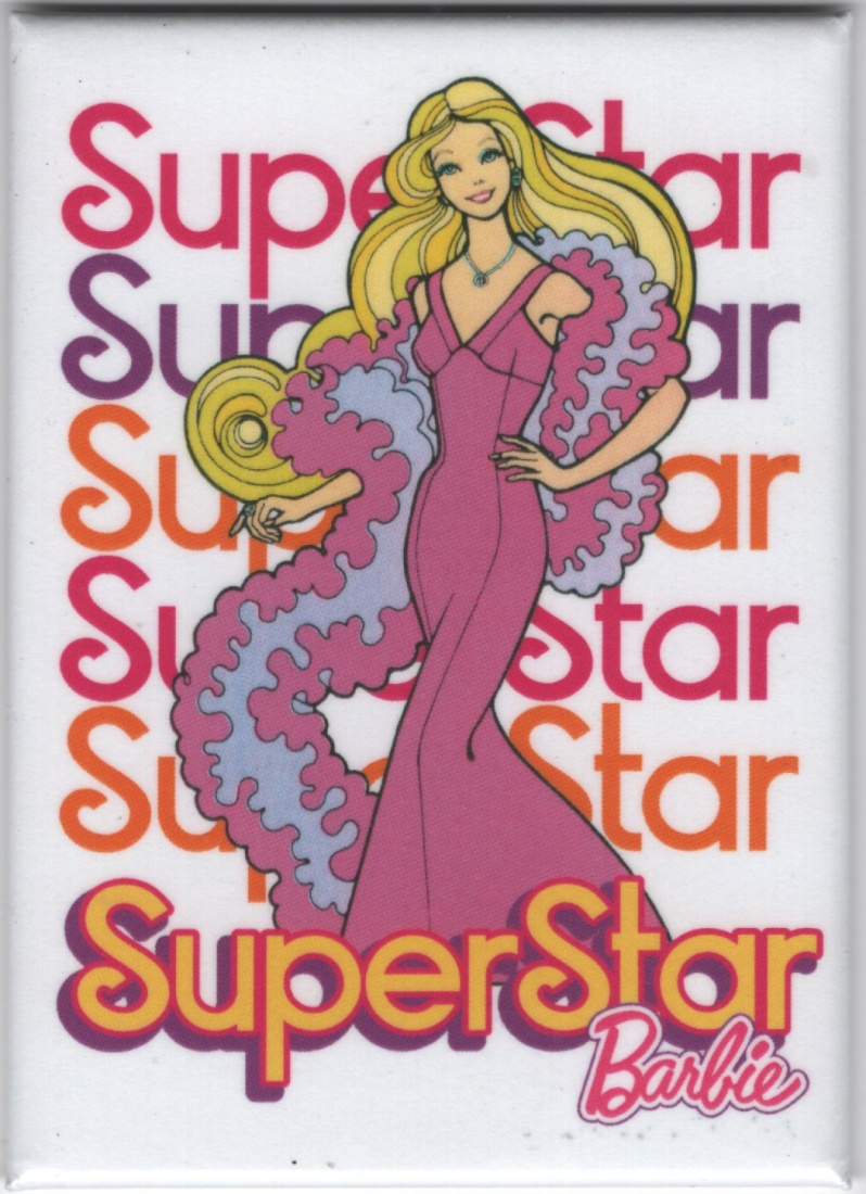 This is one of a series of licensed 2.5″ x 3.5″ magnets featuring logos and art images from the original popular Barbie Doll line from Mattel Toys. New and unused, it is stored in a smoke and pet free environment.