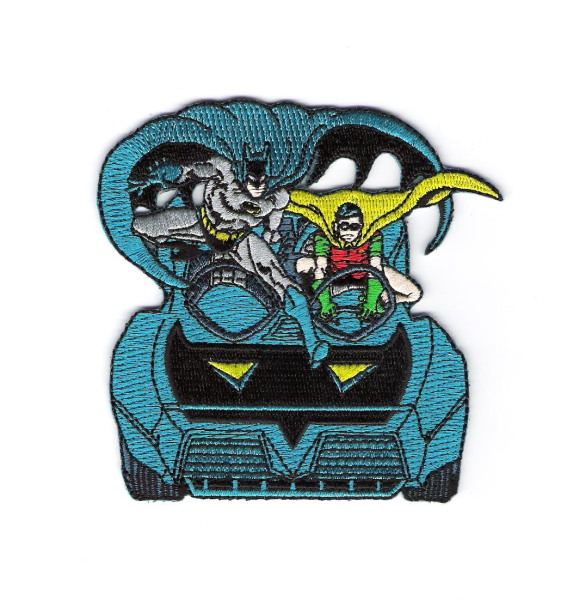 This is a comic art rendition of Batman and Robin getting into their Batmobile. This is not an easy patch to find, and is embroidered, 3 3/4″ high and wide and is in mint unused condition. It has a glue backing for easy application to any cloth surface. It has been stored in a smoke and pet free environment.