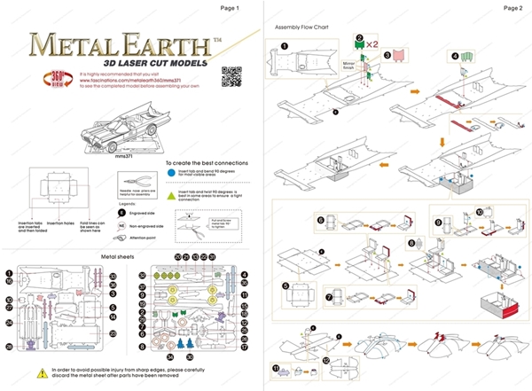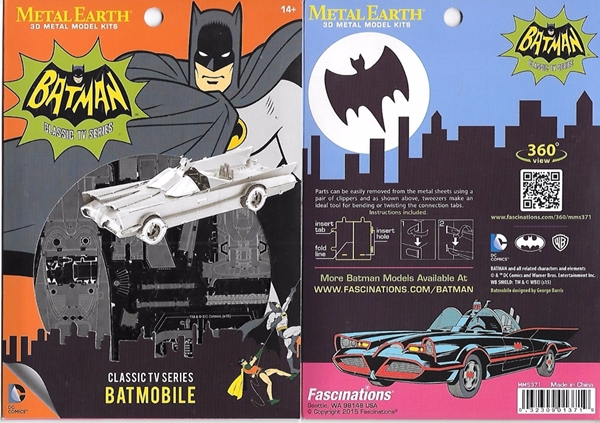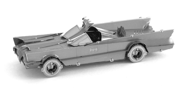 This amazingly detailed model starts as 4″ square sheets and finishes as a 3-D model. It is approximately 3.5″ x 1.3″ x 1.0 when assembled and this one features Batman’s famous Batmobile as seen in the 1960’s classic TV series. The 1966 Batmobile from the live action television show began life as a Ford concept car called the Lincoln Futura. The body of the Futura was fabricated by Ghia of Italy, whose artisans hammered the car’s panels over logs and tree stumps carved as forms to create the sleek manta ray-like car. The extra-large bat-trunk in the Batmobile holds various crime-fighting equipment and has plenty of space to fit eight people comfortably. The windshield is bulletproof. And of course, the Batmobile is not without its helpful gadgets including the nose-mounted chain slicer, lasers, rockets, an on-board telephone, radar, dash monitor, on-board computer, and police beacon, among others. The sheets contain detailed laser etching for easy removal. Complete instructions are included to show you how to pop out the pieces, bend the tabs, and connect them at the attachment points with an average assembly time of 30-45 minutes. It has been stored in a smoke and pet free environment. We also offer an optional LED base or a Solar Powered Spinner for better display of your model.