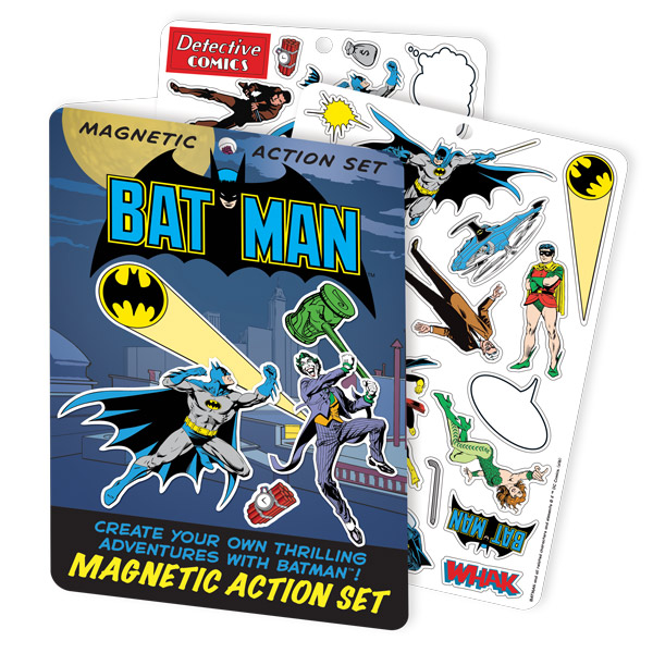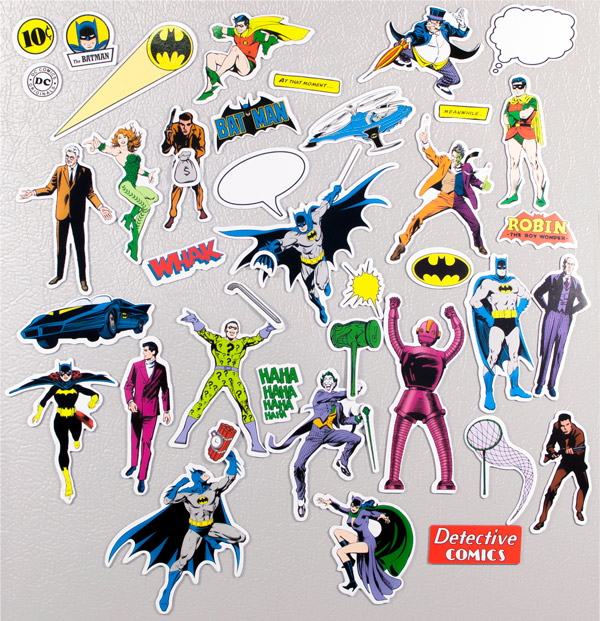 Produced by UPG in 2016, this is a magnetic playset featuring images from the world of DC Comics super hero Batman. When the Bat-Signal appears in the sky, it’s the Caped Crusader to the rescue! Now you can be front row center when Gotham City’s greatest hero battles its most dangerous villains! This magnetic play set features magnets of Batman and his most memorable villains and allies. This is a new, never used, magnet set still sealed in its original shrink wrap and stored in a smoke and pet free environment.