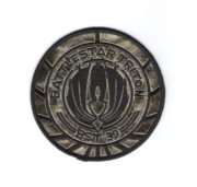 This is the logo shoulder patch of the new hit TV show Battlestar Galactica, as worn by the Marines, black squad version. It is a new, mint, embroidered patch, measuring 4″ across. This patch comes with a glue backing for easy application to any cloth surface and has been stored in a smoke and pet free environment.