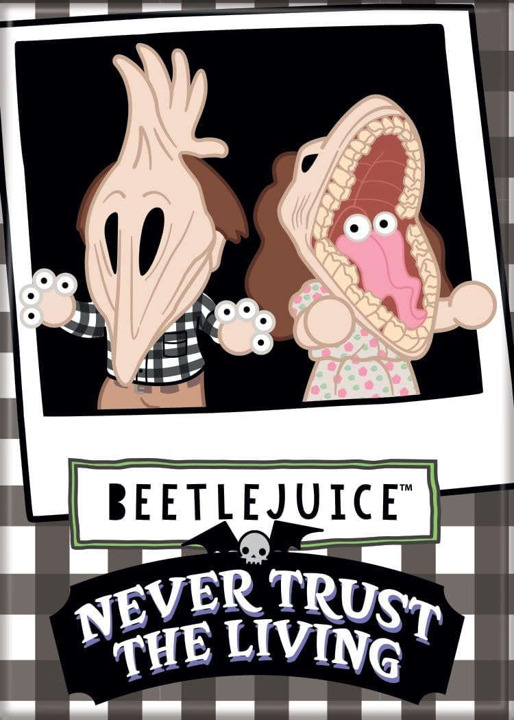 This is a licensed 2.5″ x 3.5″ magnet featuring an image from the comedy/fantasy/horror movie Beetlejuice. It is new and unused and stored in a smoke and pet free environment.
