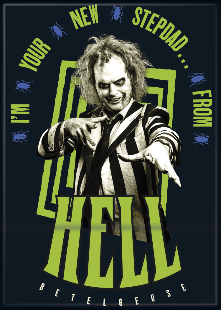 This is a licensed 2.5″ x 3.5″ magnet featuring an image from the comedy/fantasy/horror movie sequel Beetlejuice Beetlejuice. It is new and unused and stored in a smoke and pet free environment.
