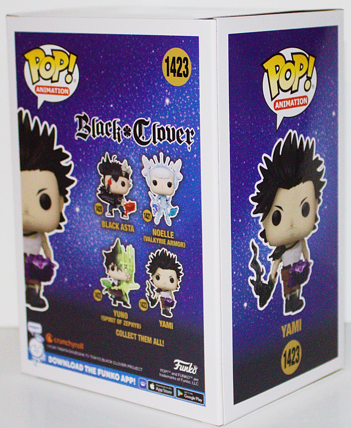 This is part of the FUNKO line of POP vinyl figures and this series features characters from the anime series Black Clover, measuring 3.75″ high. This comes in a sealed illustrated box with a clear plastic front that displays the toy and it stored in a smoke and pet free environment.