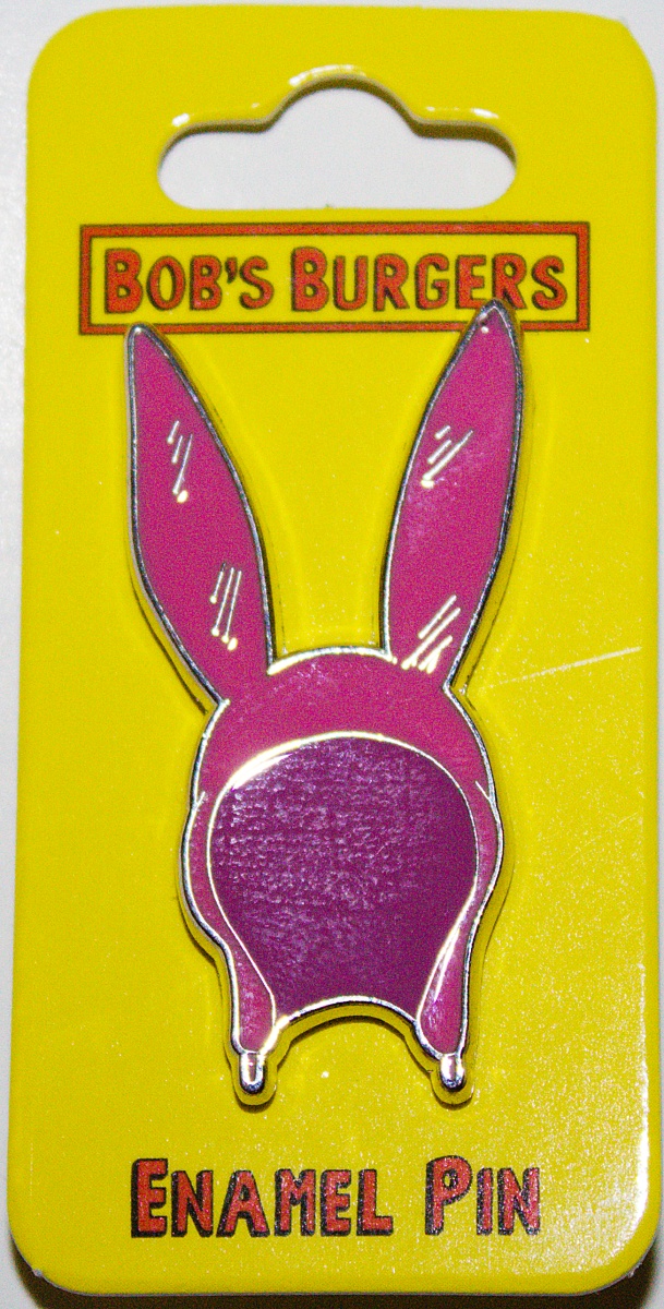 This is a licensed enamel metal pin measuring .75″ wide x 1.5″ high featuring the bunny ears hat of Louise from the animated TV Series Bob’s Burgers. This is a new, never used pin stored in a smoke and pet free environment.