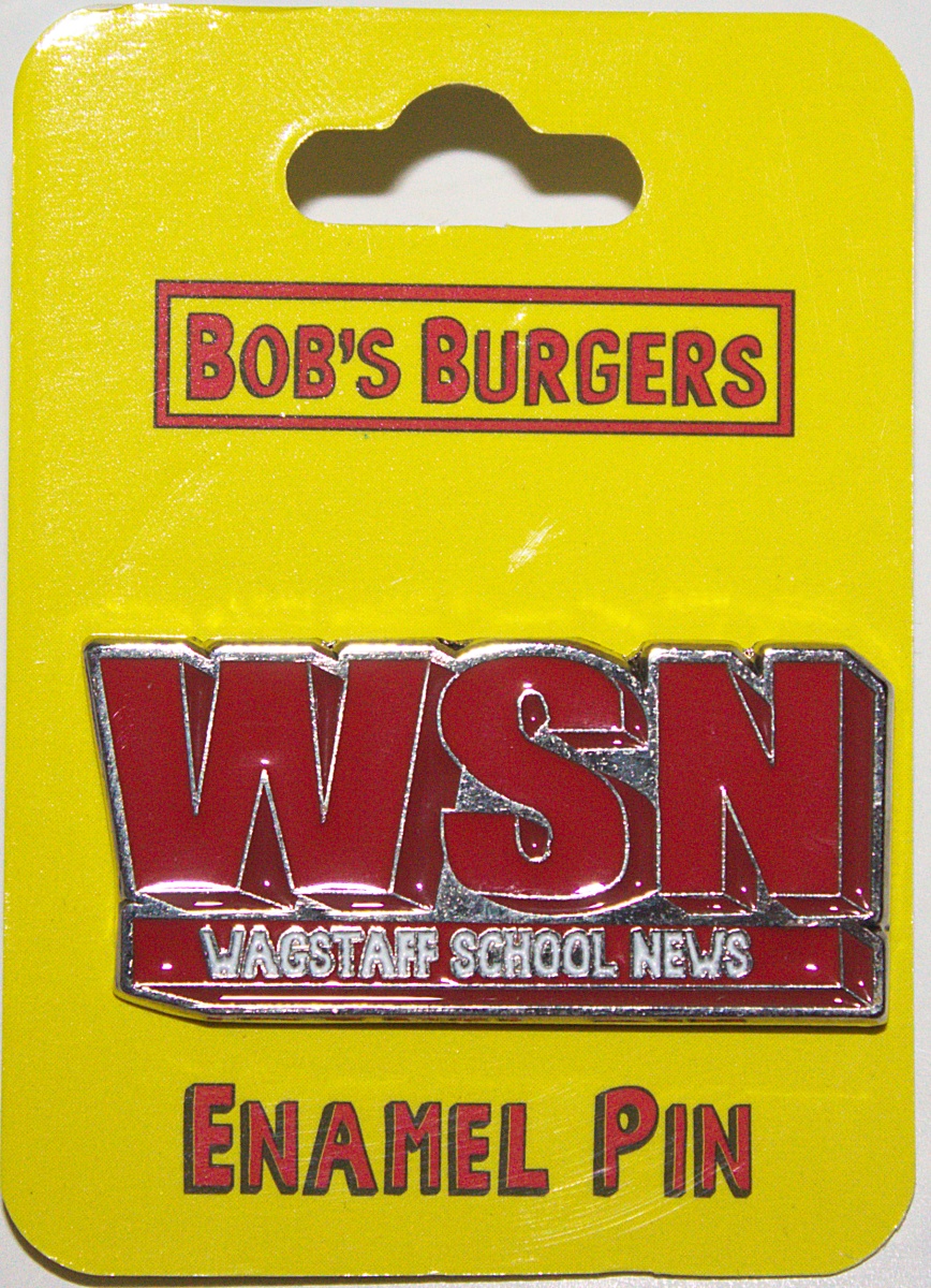 This is a licensed enamel metal pin measuring 1.5″ wide x .75″ high featuring the WSN Wagstaff School News logo from the animated TV Series Bob’s Burgers. This is a new, never used pin stored in a smoke and pet free environment.