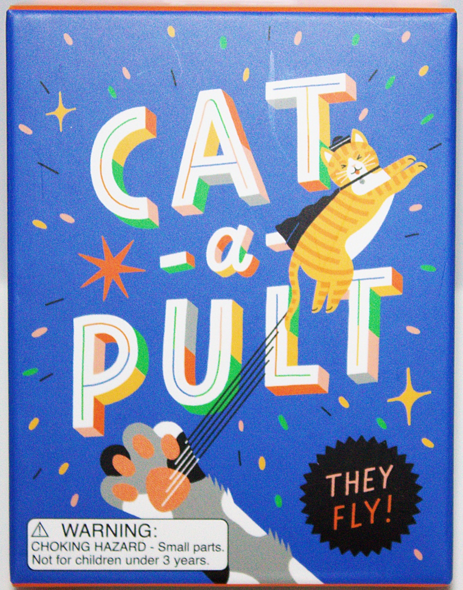 Launch mini cats into the air with this fun desktop game with a cat lover’s twist! This includes a 3.5 x 1.5 inch mini cat-a-pult, three 1-inch cats, and a bullseye landing mat. The small size allows for some cat flying fun anytime, anywhere and makes a great gag gift or self-purchase for feline fans. It also has an instructional mini book with full-color illustrations. This is a new, sealed copy that we purchased direct from the publisher and it has been stored in a smoke and pet free environment.