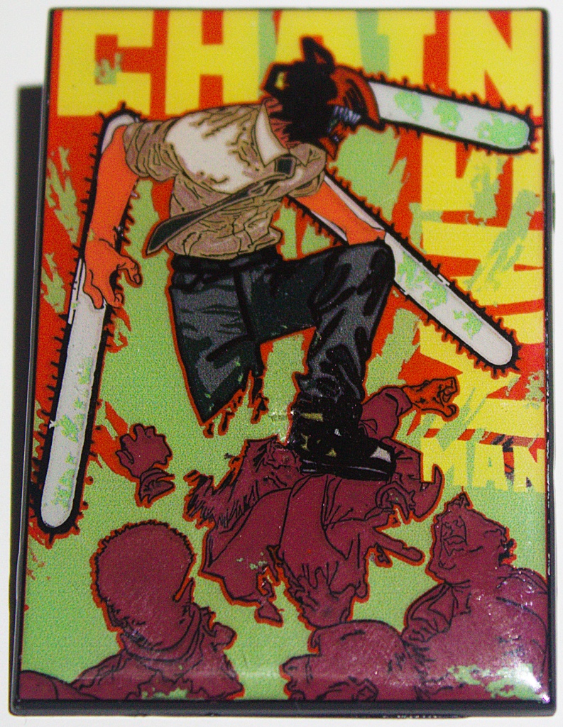 This is a 2.25″ tall x 1.5″ wide metal enamel pin featuring the image of Denji with chainsaw blades turning into Pochita the devil dog from the popular Japanese manga/anime series Chainsaw Man. It is in mint, unused condition stored in a smoke and pet free environment.