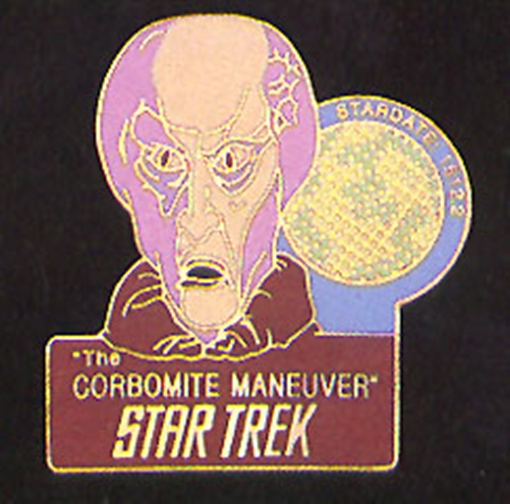 This pin features an image from the tenth aired Classic Star Trek TV series episode “The Corbomite Maneuver”. It measures 1.5″ high and is a new, unused, mint condition pin made by the Hollywood Pins Company in 1990. It has had limited release and is not easily found outside of Star Trek conventions. Hollywood Pins closed down in October 2001 so this pin is next to impossible to find.