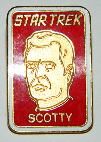 This cloisonne metal pin features the facial image and name of Lt. Commander Scott (Scotty) as seen on the original Star Trek TV Series. It measures 1.25″ high and is a new, unused, mint condition pin made by the Hollywood Pins Company in 1990. It has had limited release and is not easily found outside of Star Trek conventions. Hollywood Pins closed down in October 2001 so this pin is next to impossible to find. It has been stored in a smoke and pet free environment.