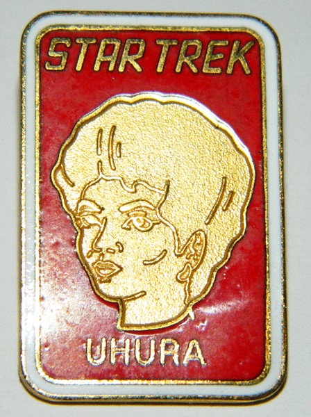This cloisonne metal pin features the facial image and name of Lieutenant Uhura as seen on the original Star Trek TV Series. It measures 1.25″ high and is a new, unused, mint condition pin made by the Hollywood Pins Company in 1990. It has had limited release and is not easily found outside of Star Trek conventions. Hollywood Pins closed down in October 2001 so this pin is next to impossible to find. It has been stored in a smoke and pet free environment.