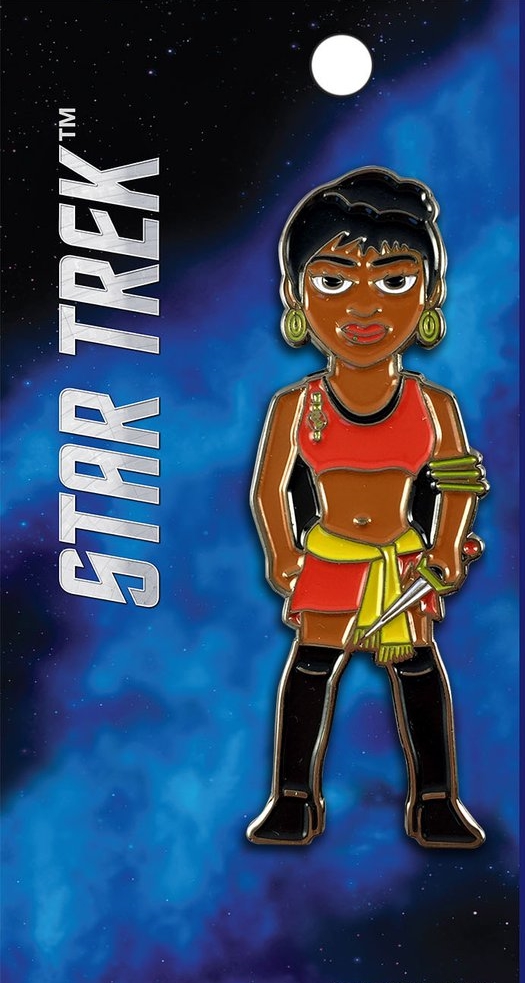 This 2″ tall enamel metal pin features the image of the Mirror Universe version of Lt. Uhura from the original classic Star Trek TV series. This is a mint, never used licensed pin that comes in a s sealed package with a header card. This pin is not easily found outside of Star Trek conventions due to low distribution. It is stored in a smoke and pet free environment.