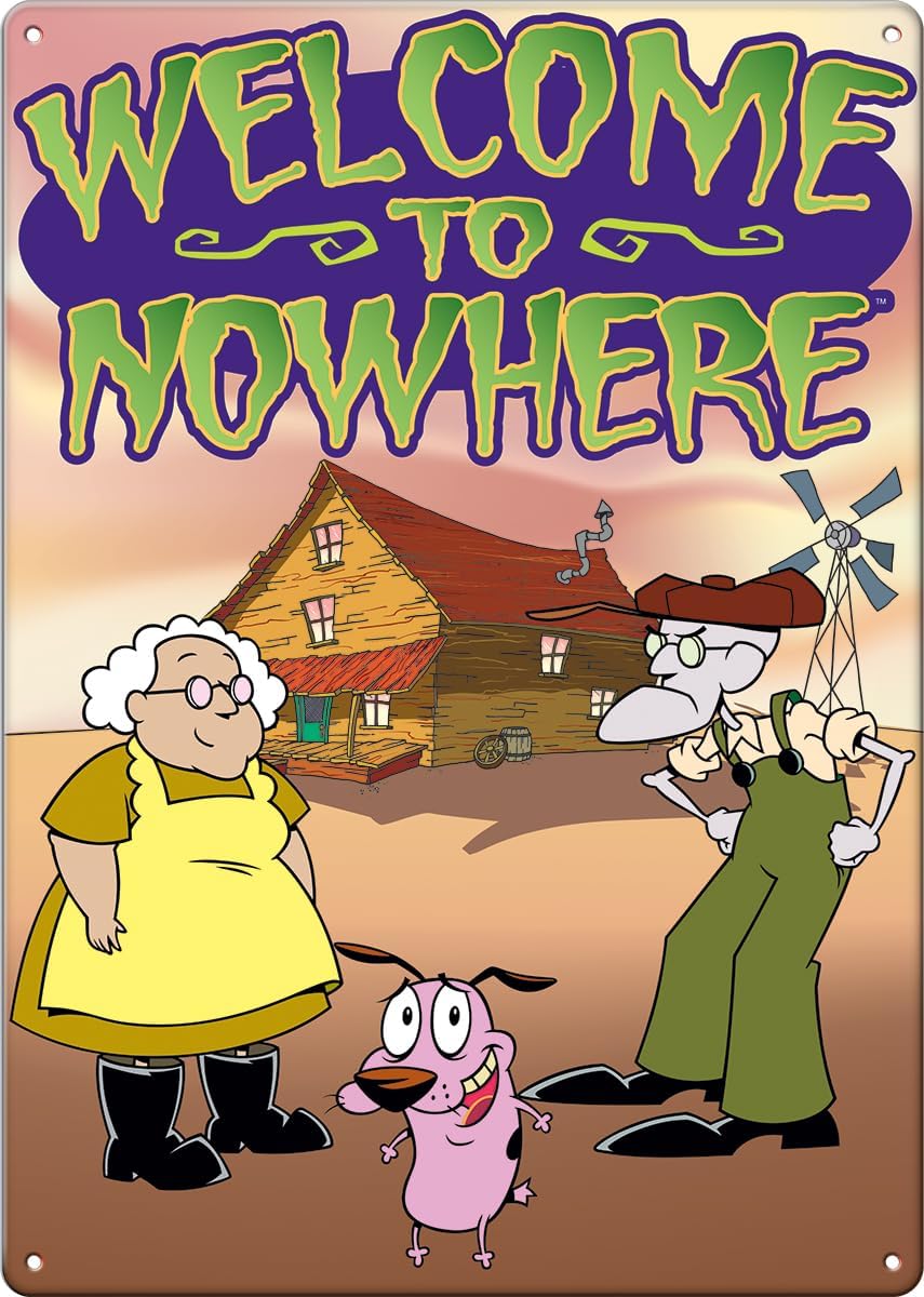 This is an 11.5″ x 8.25″ heavy grade metal sign poster from the hit animated TV series Courage the Cowardly Dog. These are produced in the style of the original metal signs that were common in the first half of the 20th century. It is a new, never used sign, complete with pin holes in the corners for easy hanging as well as a plastic tab on the top back side and protected in shrink wrap. These also look very nice framed. It has been stored in a smoke and pet free environment.