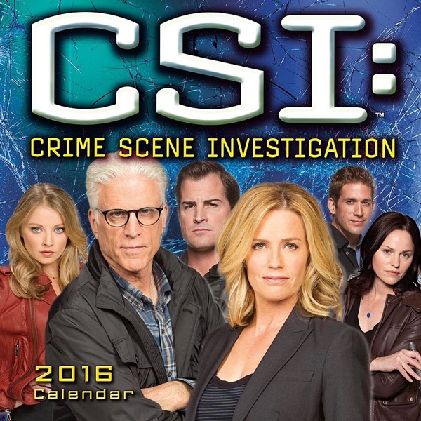 This is the 2016, 16 month wall calendar with images from the popular TV Series C.S.I. CSI: Crime Scene Investigation is one of the most popular dramatic TV series in the world. Millions of viewers tune in weekly to watch the team of forensic investigators examine the evidence to identify the culprit. D.B. Russell (Ted Danson) and Julie Finlay (Elizabeth Shue) guide their team as they do whatever it takes to solve the crime and nab the guilty. This is a mint, unused, original shrink wrapped copy, printed by Sellers Publishing. It has been stored in a smoke and pet free environment.