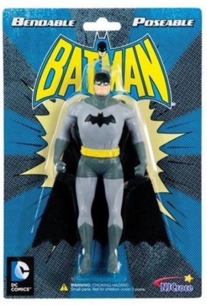 Produced by NJCrose is this 5.5″ tall colored PVC figure in the 3-D image of Batman based upon the comic book from DC Comics. It is bendable, flexible and poseable and is a mint, unused toy in a sealed blister package stored in a smoke and pet free environment.