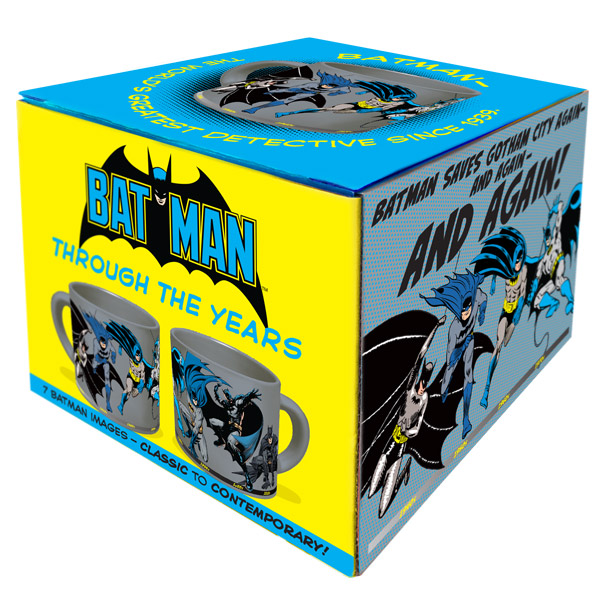 Produced in 2015 this is a 14 ounce ceramic mug that features artwork of the evolution of DC Comics Batman in a wrap-around design. Batman has defended Gotham City from evildoers for generations, and now the World’s Greatest Detective will keep watch over your hot cocoa. It’s Batman in action – from his first appearance in Detective Comics #27 (May 1939) to the 21st Century! This mug features 7 images of Batman through the years, from his classic 1939 image to contemporary. This is a photo quality design and is Microwave and dishwasher safe. It is new and unused, comes in an illustrated box and is stored in a smoke and pet free environment.